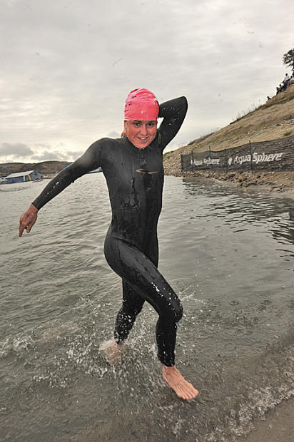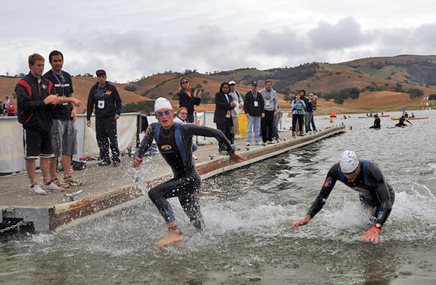 Fettell wins the swim prime over a slipping Andy Potts, who successfully fought the slight ankle sprain the rest of the day.
