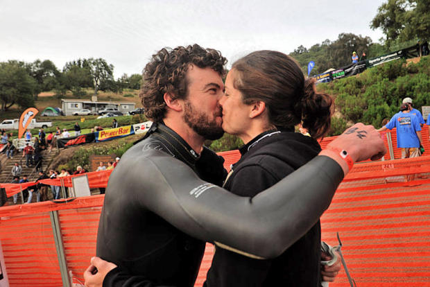 Becky Lavelle like husband Brian Lavelle's new lush beard and rewards him with a pre race kiss. The former champion "wasn't ready" to race this year.