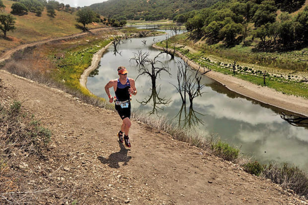 Lars Finanger runs past the solitary splendor of the creek at Mile 3.5 to a 4:19:44 18th place finish.