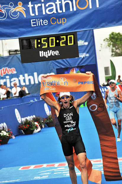 Tim Don wasted all but three seconds of his big lead soaking in the cheers of the crowd before seizing the finish line banner.