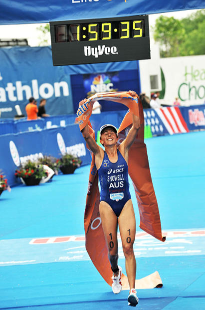 In its four year history, the Hy-Vee Triathlon has established a firm place in the firmament of great triathlons, and this year was no exception. Emma Snowsill showed the world she had come all the way back from her 8-month purgatory of injury and illness with her magisterial closing run which overcame a dismal swim. Tim Don displayed the greatness he had in winning the 2006 ITU World Championship in prevailing in a duel with Hamish Carter.