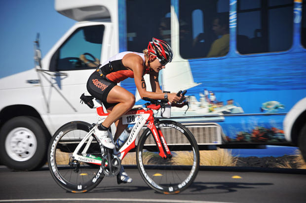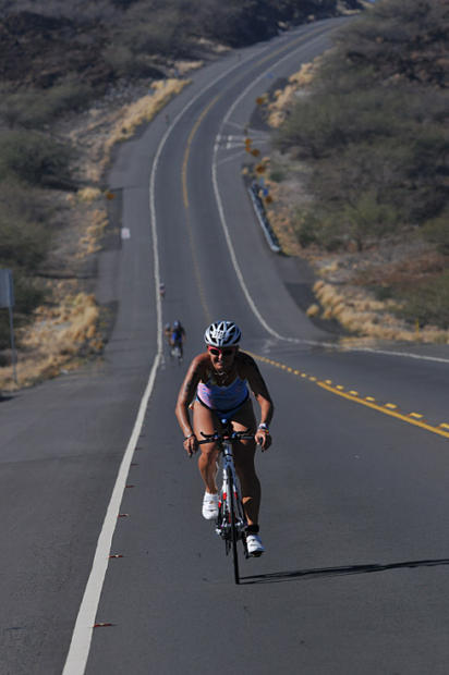Local Kona resident pro Bree Wee rides the rolling hills of the Queen K.