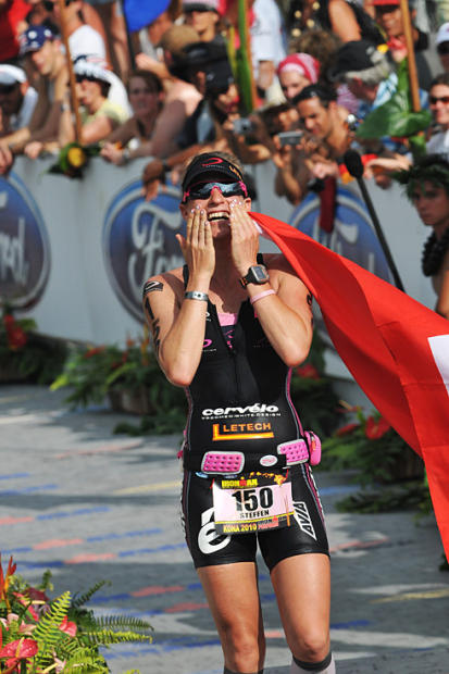 Caroline Steffen of Switzerland cannot quite believe she finished second in her professional debut at the biggest Ironman in the world.