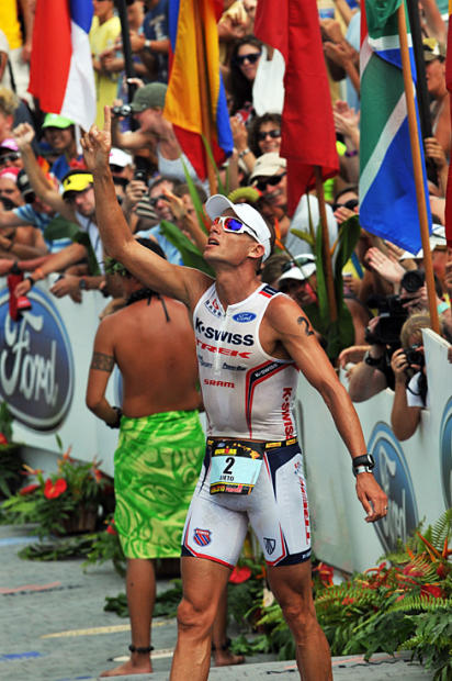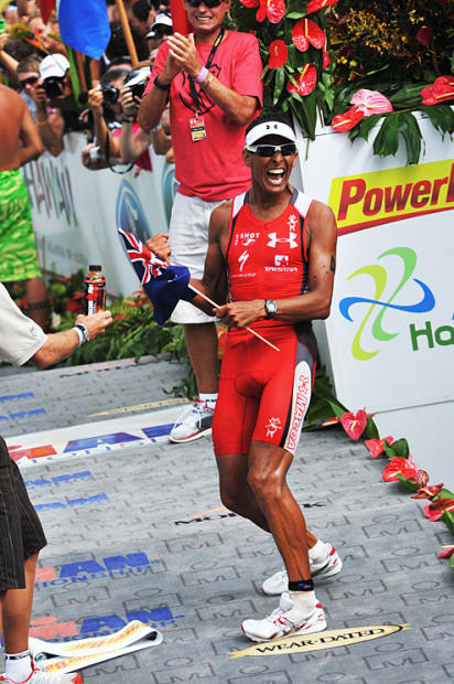 Pete Jacobs of Australia exults in his stellar 2:41:05 marathon that gave him a 9th place finish.