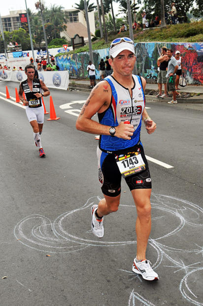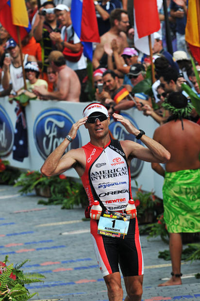 Defending champion Craig Alexander's 2:41:59 marathon could not make up his deficit off the bike and he took 4th.