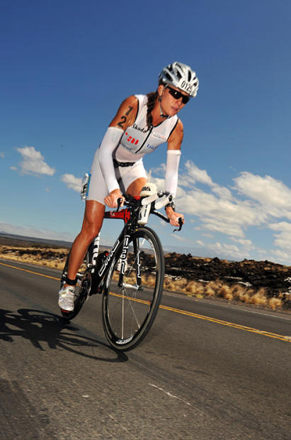 Switzerland's Karin Thuerig has cycling gold at the world time trial championships and Olympic bronze, plus triathlon wins at IM Switzerland and Powerman Zofingen. On Saturday, she broke Paula Newby Fraser's 17-year-old Ironman Hawaii bike record with a 4:48:22 split which led her to 6th place.