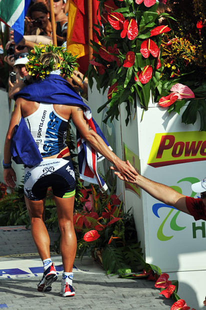 Mirinda Carfrae connects with the adoring crowd after her impressive winning performance.