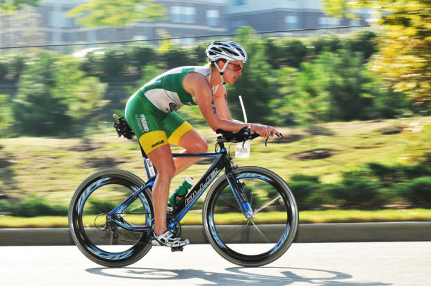 Kathryn Honderd, 27, of Atlanta Georgia at speed on the bike.
