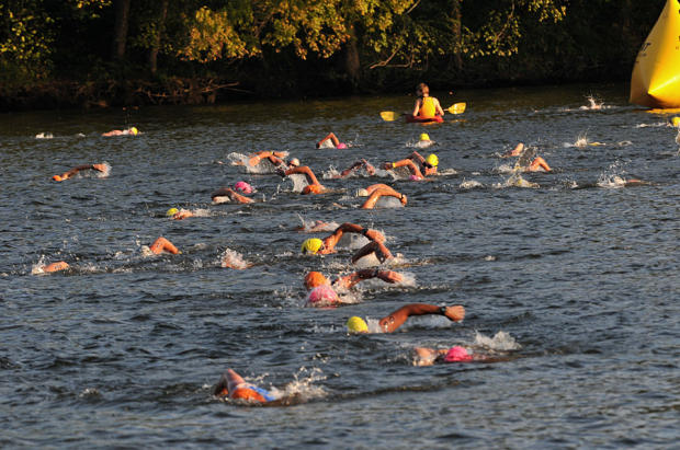 Swim pack midway through the 1.5 K course in the Black Warrior River.