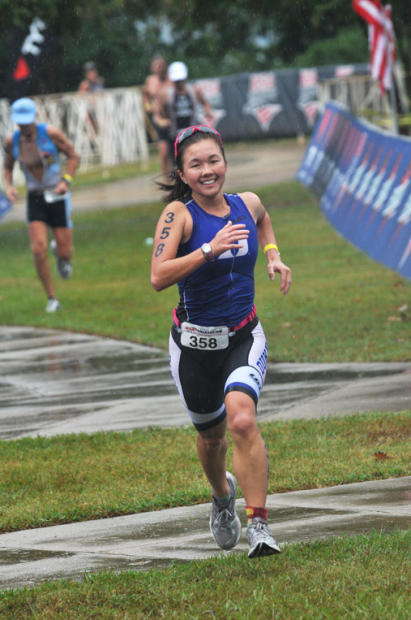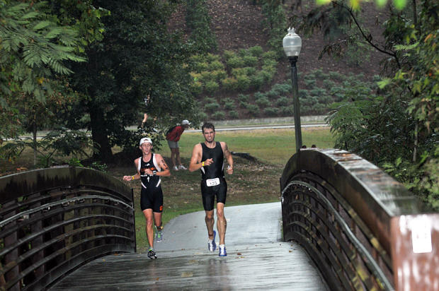 But what everybody got after the burning heat and soggy humidity of Saturday’s Olympic distance race was a grateful change in the weather to a cool, wet morning. And, thankfully, the brief lightning storm came after the swim and quit before the race had to be delayed or canceled.