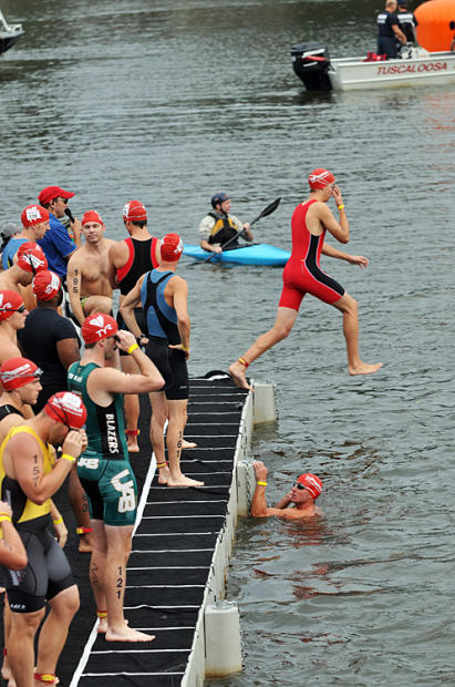 Diving in before the in-water swim start