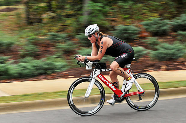 Melinda Drake, 45, of Nicholasville Kentucky, at speed on the bike.