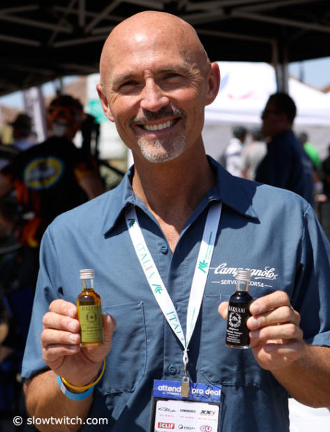 Campagnolo's Tom Kattus got an early gift of olive oil and balsamic vinegar, befitting for someone working for an Italian brand.
