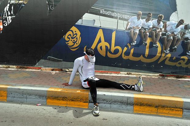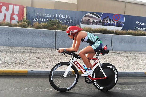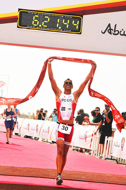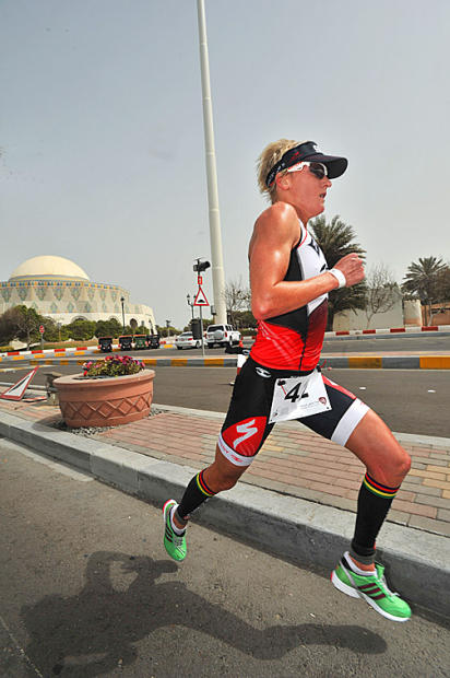 Rasmus Henning and Nikki Butterfield set race records. Andrew Starykowicz went race record fast on the bike but an errant aid station volunteer ran into his path on the bike and ended his day. Clayton Fettell and Jodie Swallow led the swim but faded a bit near the end of the day. Leanda Cave was felled by a bug and could not start. Caroline Steffen said how could she be disappointed with third place when she had a perfect day? The Abu Dhabi International Triathlon was held for the third time in this dazzling capital of the United Arab Emirates and a good time was had by almost everyone.