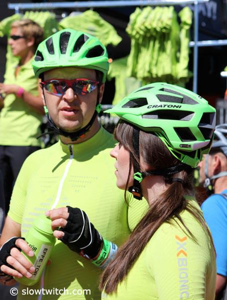 There were tons of folks trying out these x-bionic cycling clothes and the green clad testers were seen everywhere.