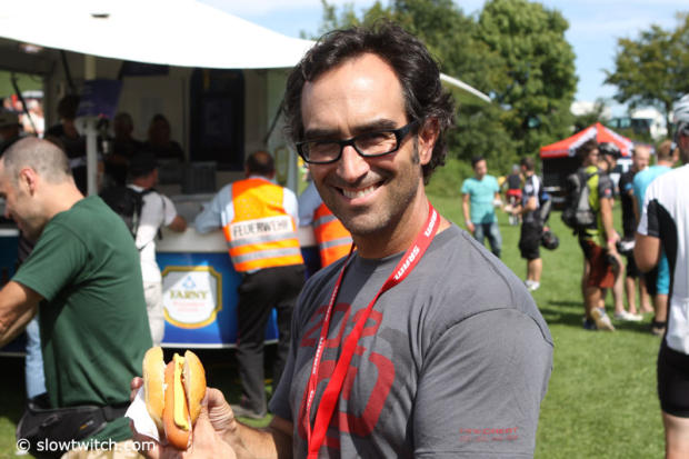 When in Rome … David Ripley from Zipp is enjoying a Festwurst for lunch.