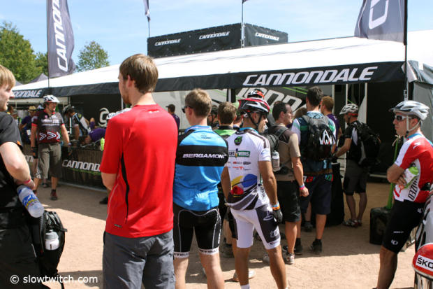 Lining up for Cannondale demo bikes
