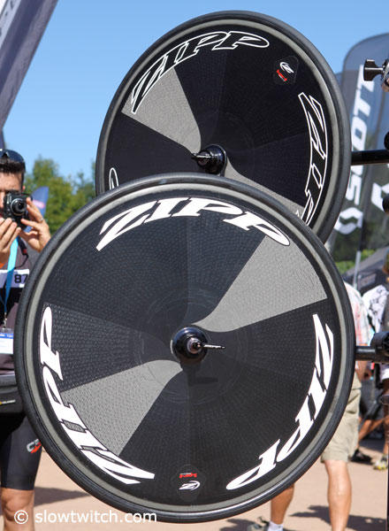 Zipp introduced the Super 9 clincher disc here at Eurobike. It is apparently testing faster than the tubular version. BAM.