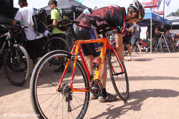 Last minute adjustments on this Focus Mares cross bike.