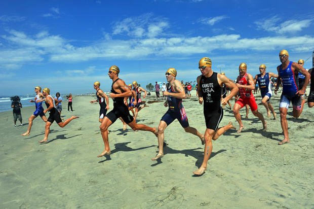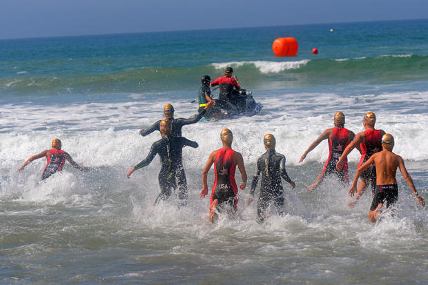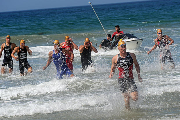 The elites are off and sprint into the Pacific Ocean on Coronado.