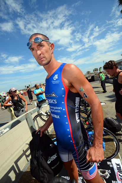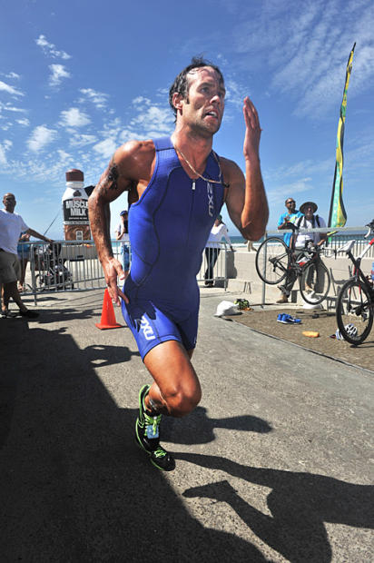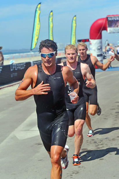 Giving proof that no good idea need be abandoned forever, triathlon race directors Lars Finanger and Mitch Hall decided to throw a Formula 1 pro triathlon revival on the Saturday before their classic Superfrog half Ironman distance event. Twenty pros, including 4 Olympians, showed up on the Coronado peninsula near the Navy SEAL training grounds and battled at warp speed until the matter was decided after 43 minutes and 52 seconds.
