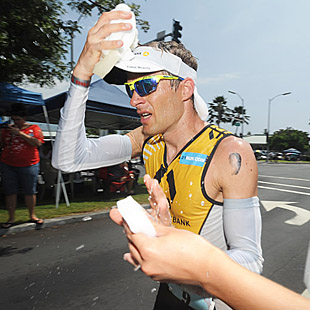 Jacobs arrived as a contender at Kona in 2009 with an 8th place finish, insisted he belonged in 2010 with a 2:41:05 run that was the third-fastest in Kona history. Last year he finished runner-up to Craig Alexander in a time of 8:09:11, a few second faster than Mark Allen’s 1989 winning Iron War time – which he closed with a 2:42:29 marathon. This year, no longer under the radar, Jacobs won Ironman 70.3 Cairns, then was struck with a pinched nerve in his glute and hip and stumbled through 4th at Ironman 70.3 Syracuse, a 6th at New York City 5150, a distant 2nd at Ironman Lake Placid, followed by a reassuring win at Ironman 70.3 Philippines. The question is: Has Jacobs forward momentum been thrown for a temporary loss?