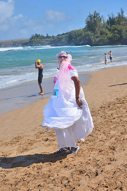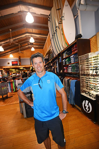 Coach Lance Watson, in Maui in support of Canadian triathletes Brent McMahon and Magali Tisseyre, stocking up on some Maui surf wear on Saturday morning.