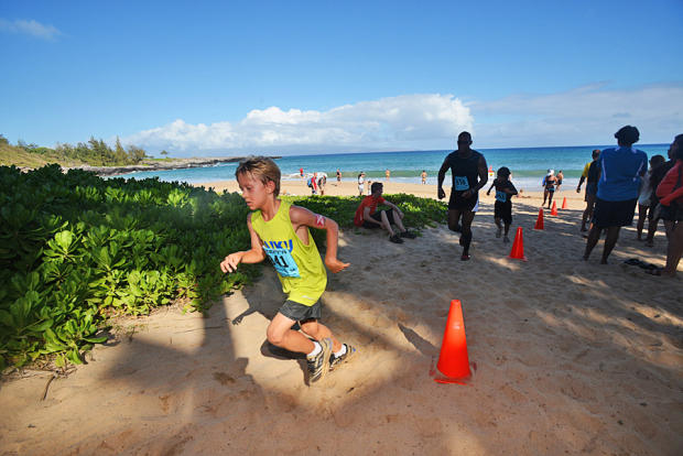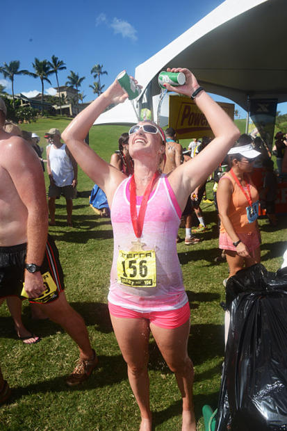 Cooling off after finishing one of the Saturday morning XTERRA trail running races.