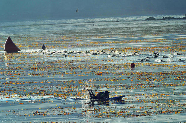 Just down the street from John Steinbeck’s old haunts in Monterey, Pacific Grove is a lyrical jewel of a town on the Pacific Ocean. Lined by elegant cypress the rocky shores are inhabited by seals, seabirds and beautiful blue salt water. It’s a perfect place for a triathlon, and Tri-California has thrown a weekend celebration of the sport for 18 years now.