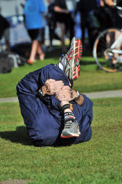 Pre race pretzel stretch.