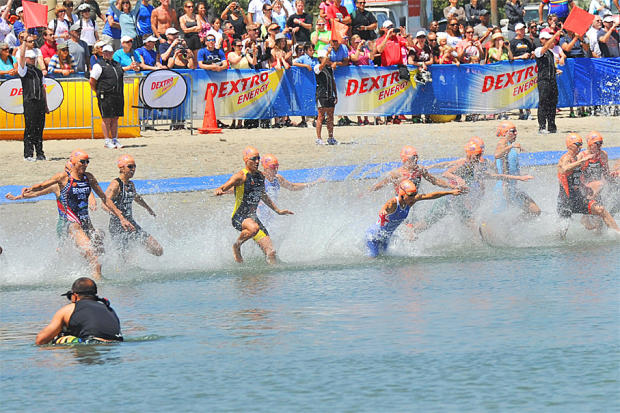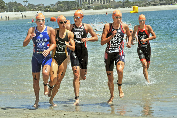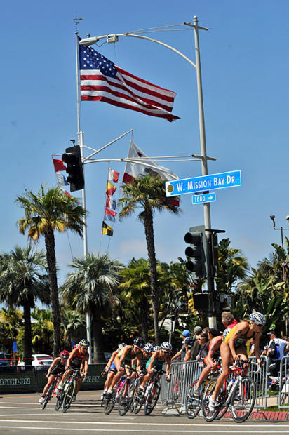 The 2012 ITU World Triathlon Series event at San Diego was held just a mile away from the hallowed ground of Fiesta Island – the site of the very first triathlon held September 25, 1974. While much has changed since the San Diego Track Club assembled a motley group of runners and multisport enthusiasts for a change of pace cross training workout including swimming, biking and running, the high spirits stay the same. In this go round, the U.S. women were fighting for the third and final spot on the 2012 Olympic team. In the end, Laura Bennett's third place finish outpaced rival Sarah Haskins and secured the final ticket to the London Olympic start.