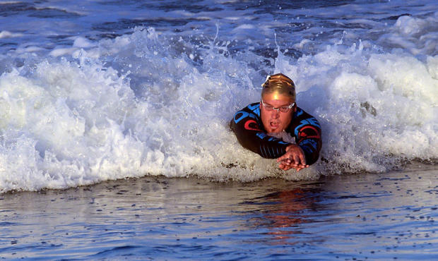Swimmers had to deal with a typical Navy SEAL training challenge – 6-foot high surf.