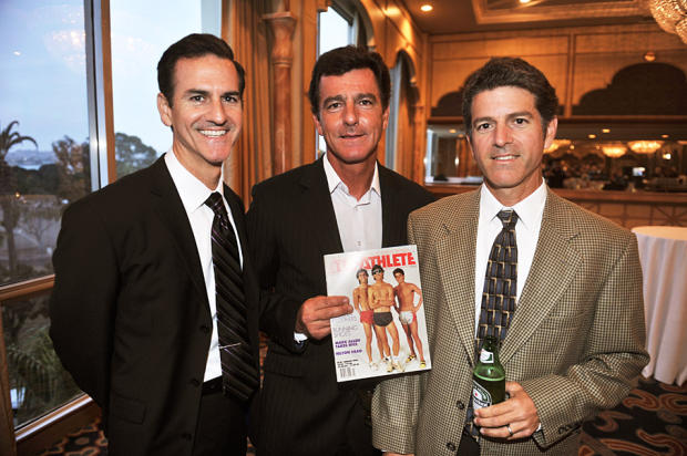 Phillip, Scott and Sean Molina with an archival Triathlete Magazine cover featuring the brothers at the peak of their athletic fitness.