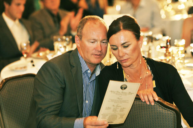 Greg and Sian Welch look over a program listing the Hall of Fame inductees' CVs.