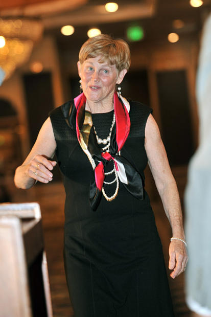 Paula Newby-Fraser, USAT Hall of Fame class of 2010, laughs at one of the evening's great personal recollections.