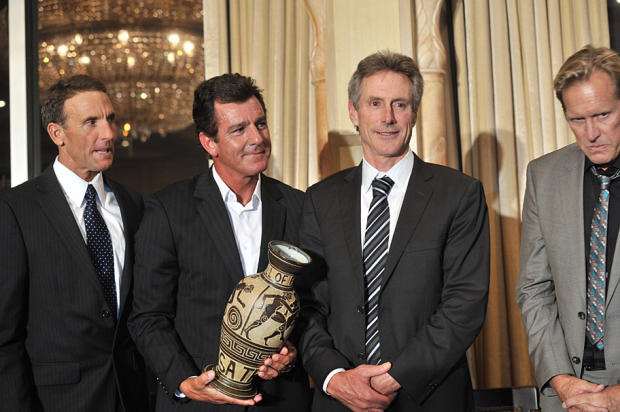 With the 2012 Olympics fast approaching, USA Triathlon decided to make May 10-12 a gala weekend in San Diego just a mile or two away from the 1974 birthplace of the sport on nearby Fiesta Island. The main attraction was the first U.S. World Triathlon Series [formerly World Championship Series] event in the United States since 2010. Both men's and women's elite races would play a key role in Olympic qualification for several countries – as well providing as venue for a fine age group race on Saturday. In addition, some ITU bigwigs had a meeting and most significantly, the USA Triathlon Hall of Fame inducted its 2012 class. All hail Ethel Autorino, Sally Edwards and Bob Babbitt! But the buzz was all about the additional induction of Scott Tinley, Scott Molina and Mark Allen. Welcomed by 2010 inductee Dave Scott, the occasion provided the first opportunity in two decades for a gathering of the original Big Four of triathlon.