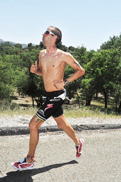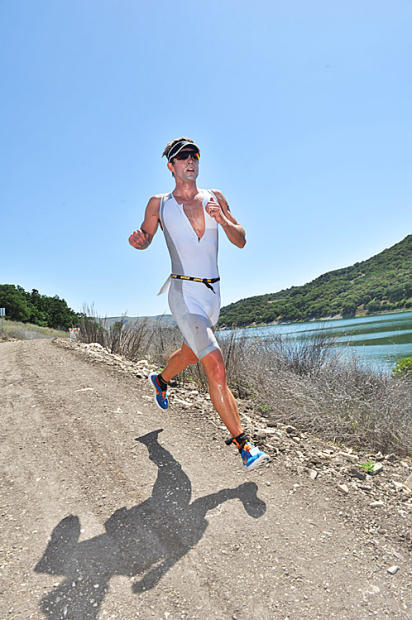 Jordan Rapp rounds the run turnaround at Mile 10 on his way to 2nd place.