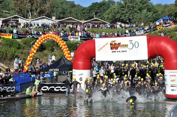 There was plenty of fireworks and drama at the 30th anniversary Wildflower long course triathlon Saturday at Lake San Antonio California.. Jesse Thomas posted the second fastest men's time ever while winning his second straight title on the classic Wildflower course. Heather Jackson one upped Thomas by breaking the course record with a 4:26:29 clocking – not to forget a blazing 1:21:08 run that also broke the course record set by another Heather, Heather Fuhr, in 1999. Former champions like 2000 winner Chris Legh took 5th. And a good time was had by all.