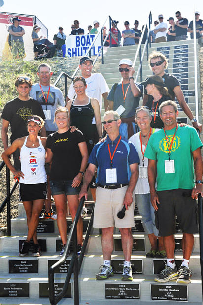 Wildflower champions come to celebrate: L to R, Bottom Row – Heather Gollnick, Samantha McGlone, race director Terry Davis, Ardis Bow, Mark Montgomery. Middle Row – Jesse Thomas, Leanda Cave, Julie Moss (chatting); Top Row – John Devere, Chris McCormack, Andrew McNaughton, Chris Legh.