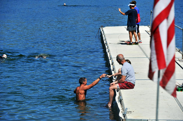 Warmer than usual waters lured some swimmers without wetsuits.