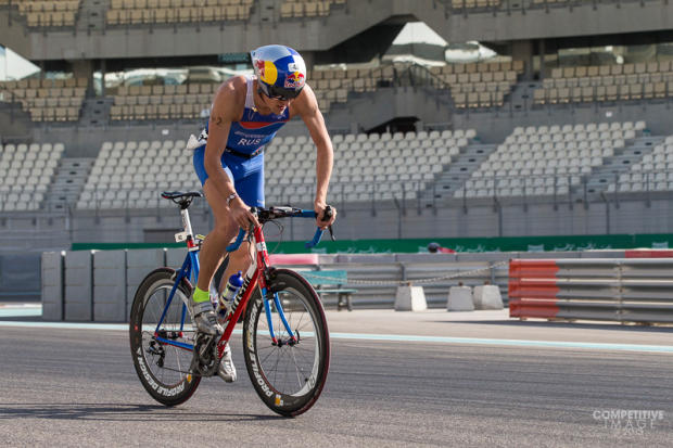 Fellow ITU Olympic course specialist Alexander Bryukhankov on his way to third place.