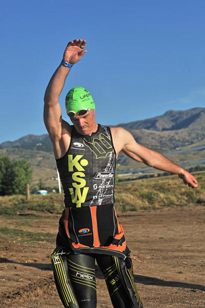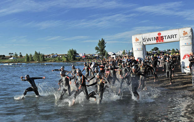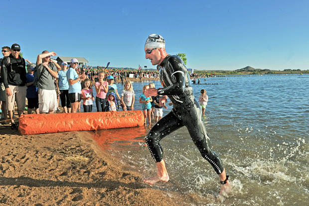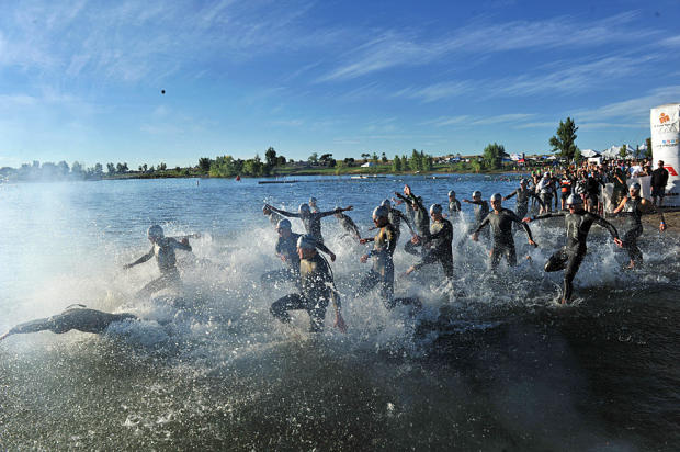 Pro men charge into Boulder Reservoir.