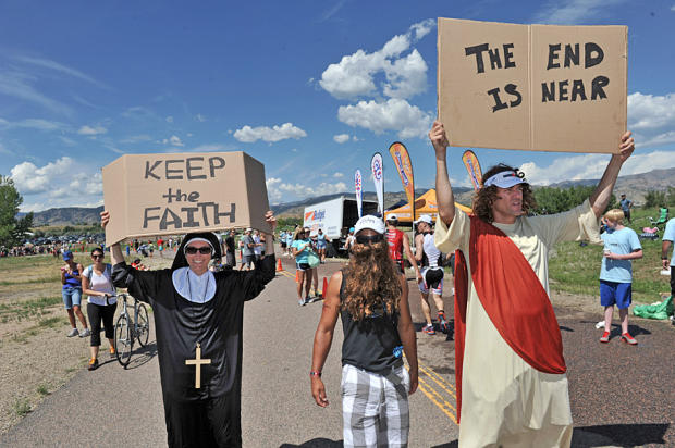 Offering the aerobic faithful encouragement with apocalyptic overtones.