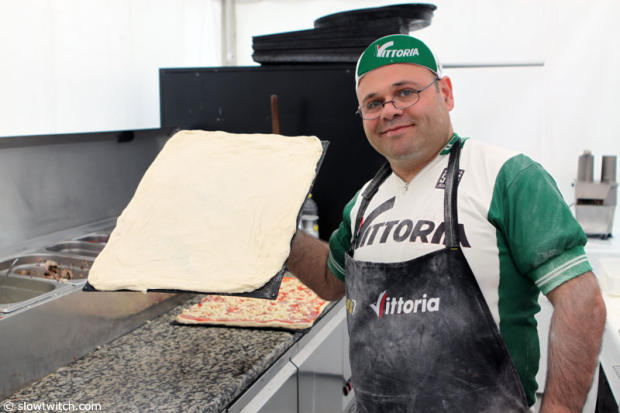Pizza for guests in the Vittoria booth. What is not to like here?