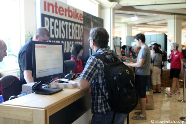 Inside the Mandelay Bay bike dealers and exhibitors picked up their badges.