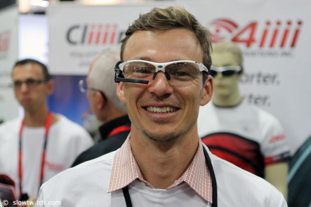 Simon Whitfield was hanging out in the 4iiii booth today and is sporting the 4iii heads up display glasses here.