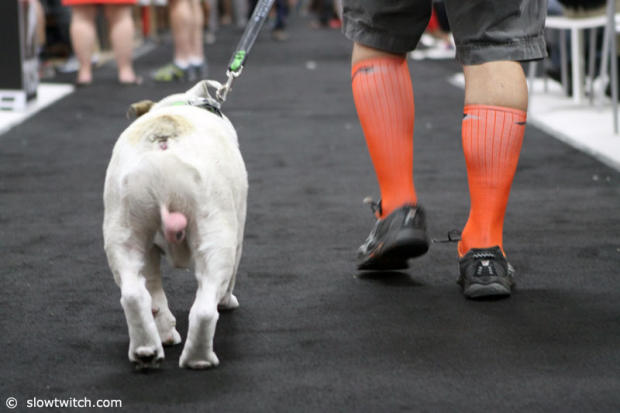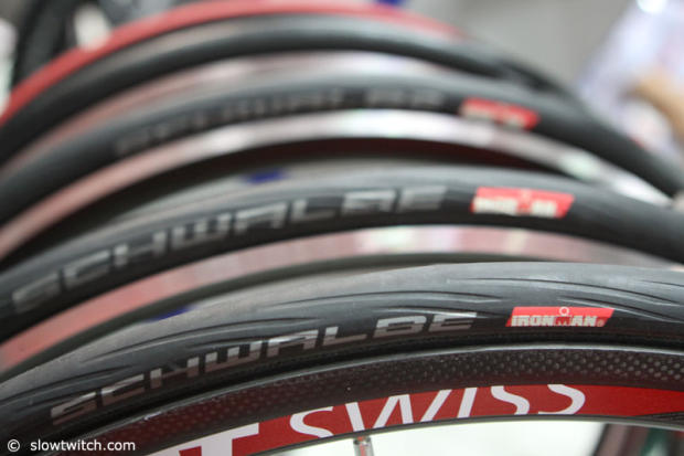 An affordable power meter offering from power2max, a new Louis Garneau aero helmet, reflective fabric from Champion Systems, road shoes from Pearl Izumi, a salty caramel GU, new goggles from Barracuda, an aero road helmet from Catlike, new Syntace aero bars, a patriotic saddle from ISM and a funky V bike from Falco. We also noticed Simon Whitfield with 4iiii glasses, action in the Guru booth, Schwalbe triathlon tires, a strapless heart rate monitor by Mio Alpha, a Cobb Kam Stop brake and more.