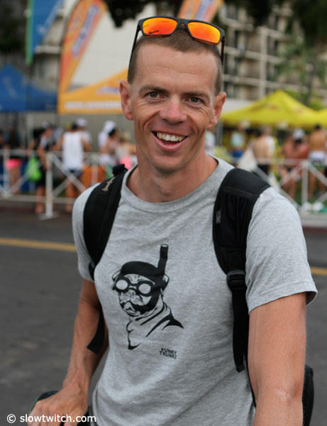Ironman Legend Mark Allen right after his morning swim in Kona.