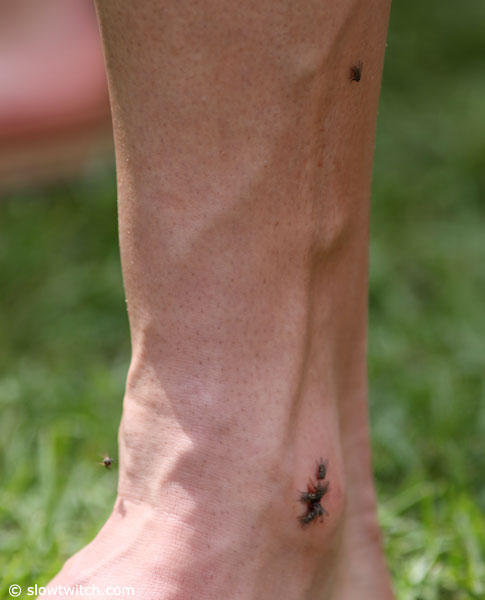 Flies are pesky in general in Kona but here they had a field day on this Pro athlete's leg.