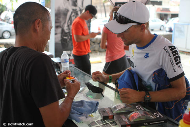 For European athletes the Oakley booth is especially tempting and wallet unloading.